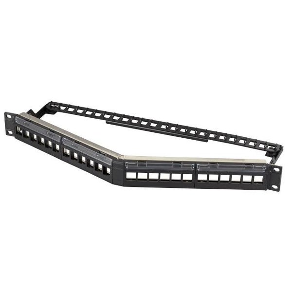 Verteilerfeld 24-Port,1HE, 19" schwarz RAL9005 gewinkelt